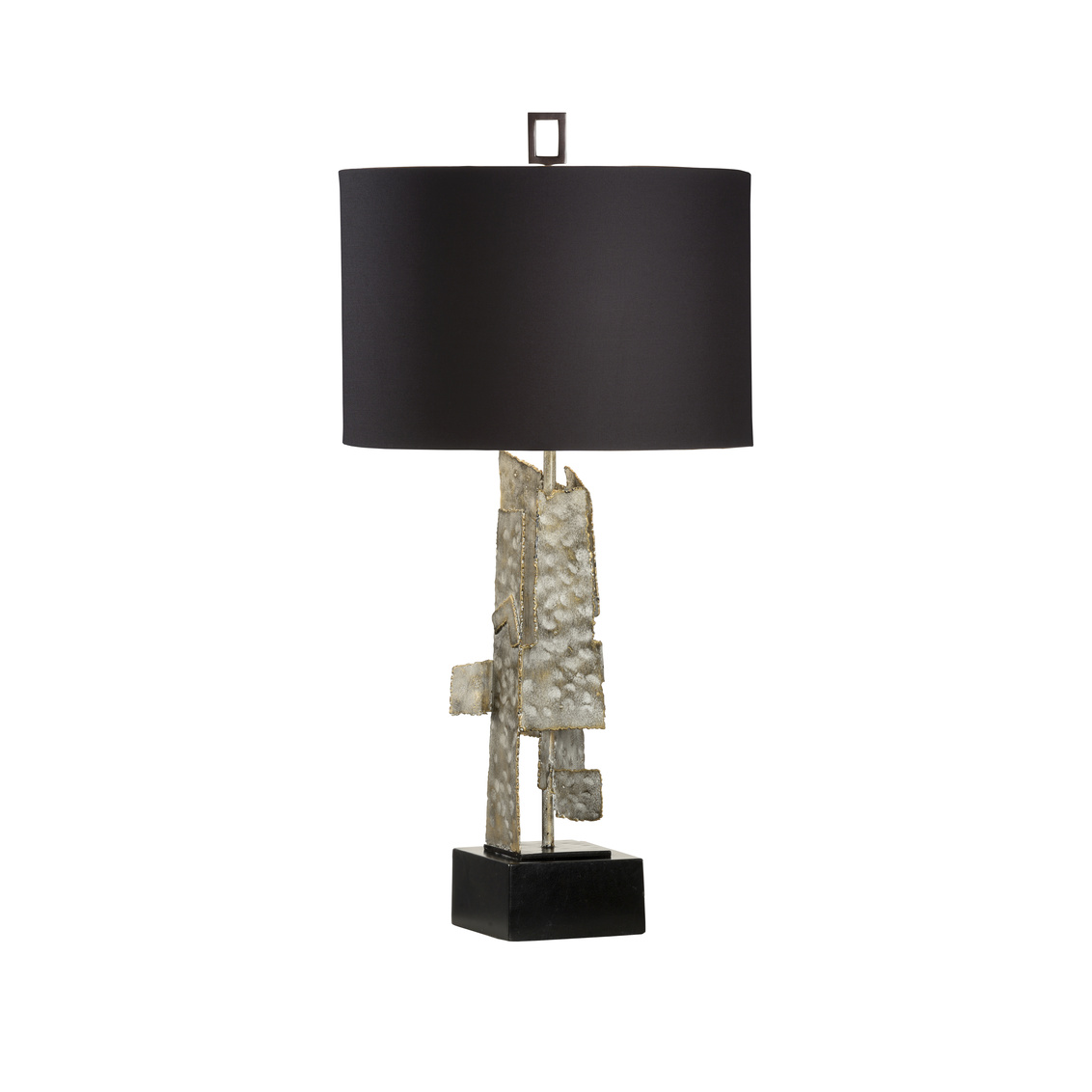 Modern sculpture form in spotted white wash steel industrial modern style.