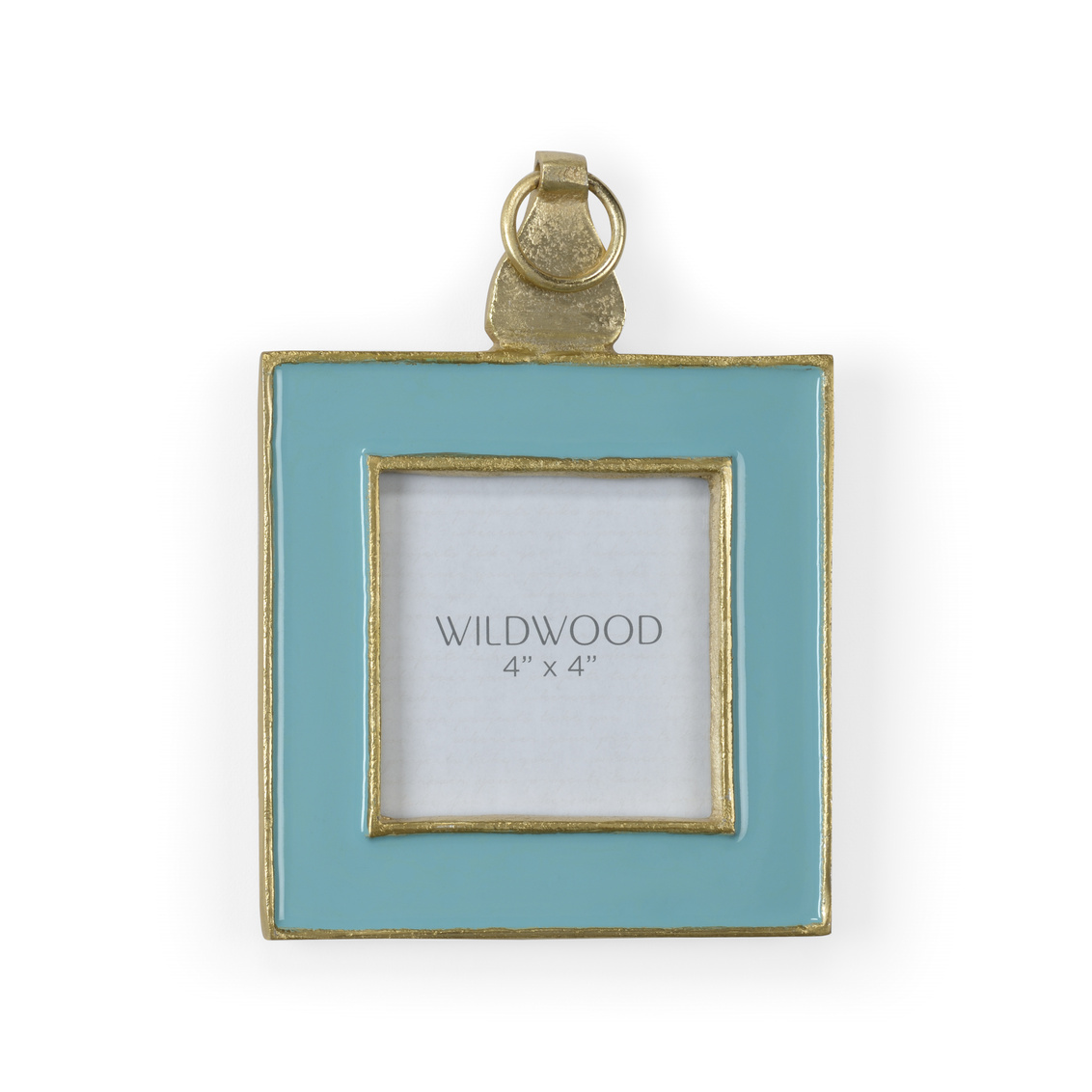 Aqua enamel wall frame trimmed in textured gold, holds 4 x 4 photo.