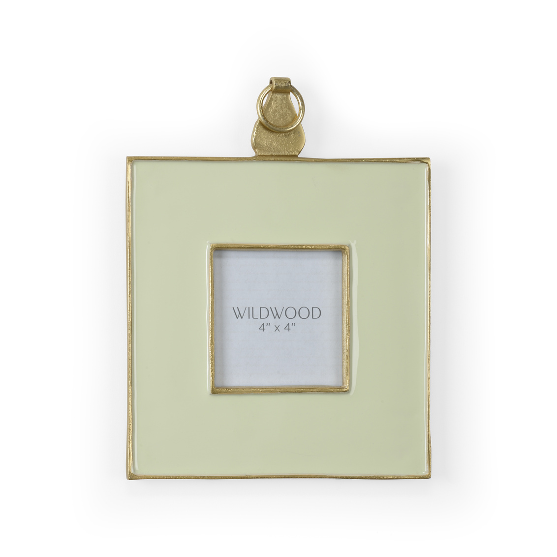 Pistachio enamel wall frame trimmed in textured gold, holds 4 x 4 photo.