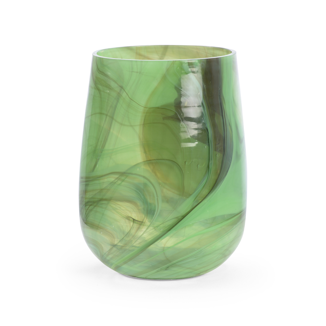 Create a dazzling focal point with our Berilo Vase. This 9.75" handcrafted glass accent features a vibrant green swirl pattern. As a vase or candleholder, this mesmerizing accent is an eye-catching piece of art. Due to the nature of creating this product, pattern and color may vary. This vase is watertight. (Vase opening: 5.75")