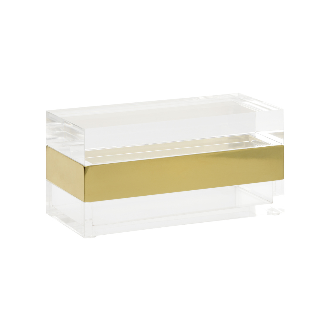 Crafted of acrylic, this decorative storage box is ideal for displaying your prized possessions. The brass band provides a modern... Show more