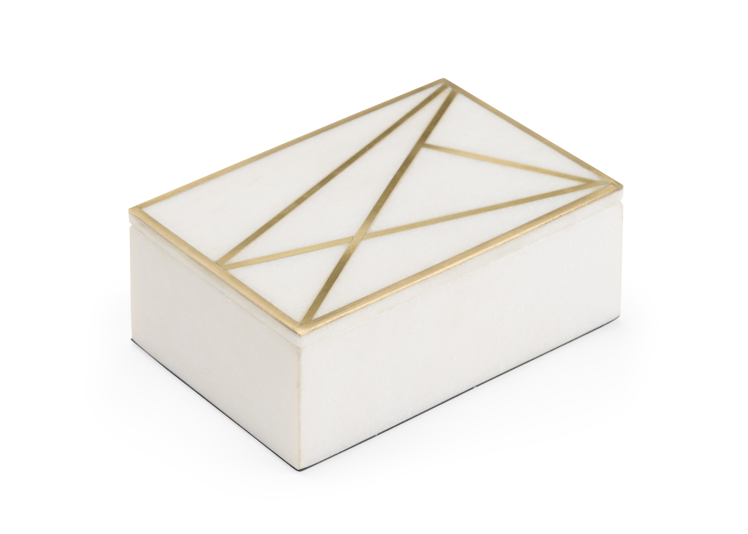 Known to clear the mind and activate your creative side, marble is also a beautiful translucent stone perfect for complementing a variety of design styles. Crafted of alabaster, this decorative box top features brass to create an attention grabbing geometric pattern. Improve the look of your decor by displaying on table tops or bookshelves in your bedroom or living area. Also availabe in a smaller version (302285).
