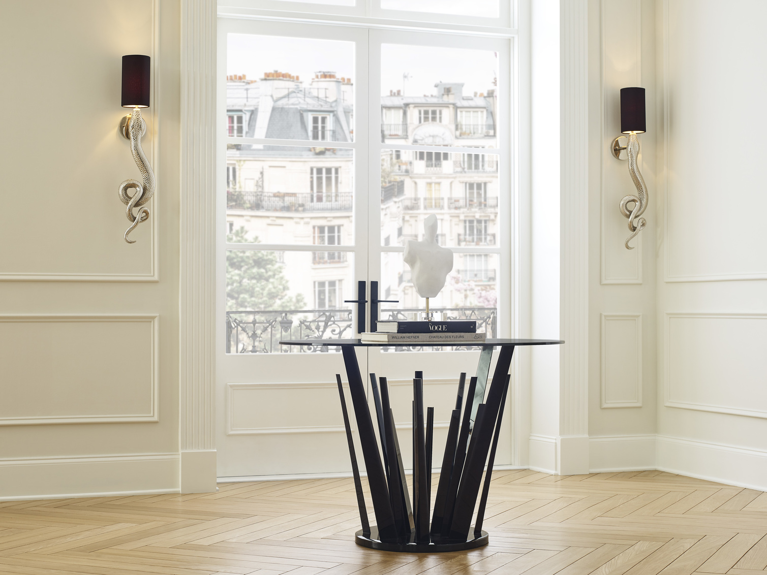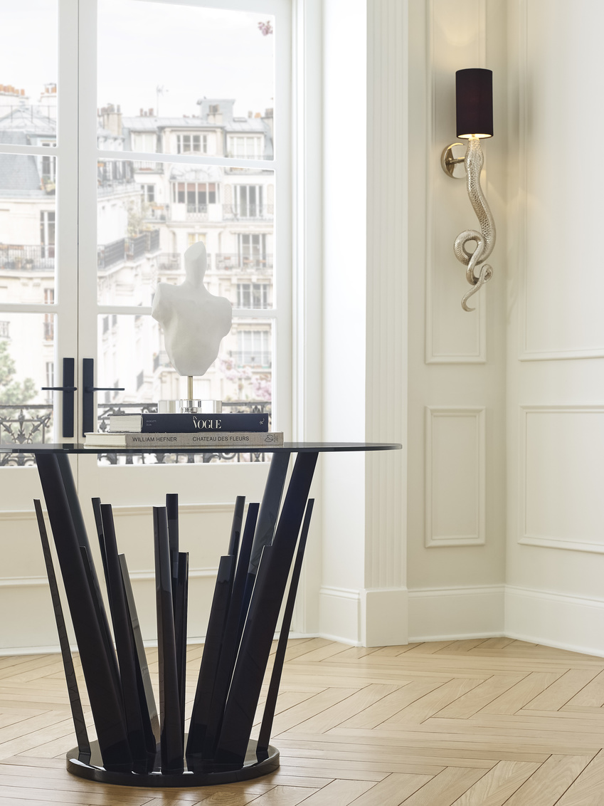 Guaranteed to be an eye-catching accent, Sapera Sconce also provides ambient lighting. Crafted of iron with a sleek brass finish... Show more