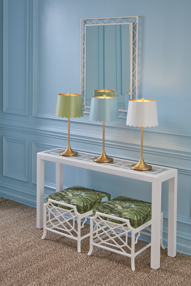 Add a touch of whimsy to your space with the Mirasol Lamp in Blue. This elegant brass lamp features a... Show more