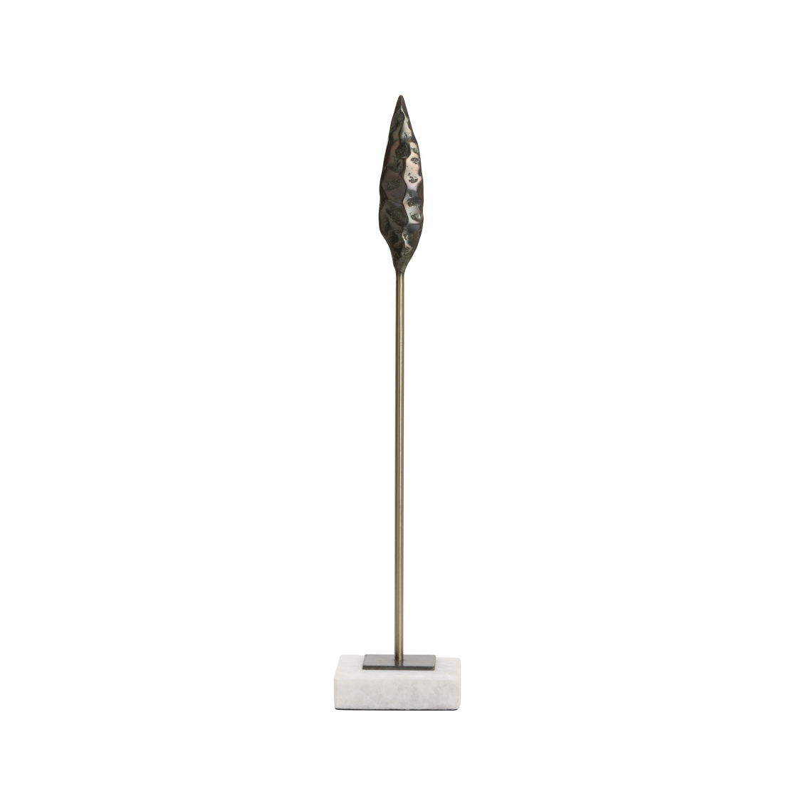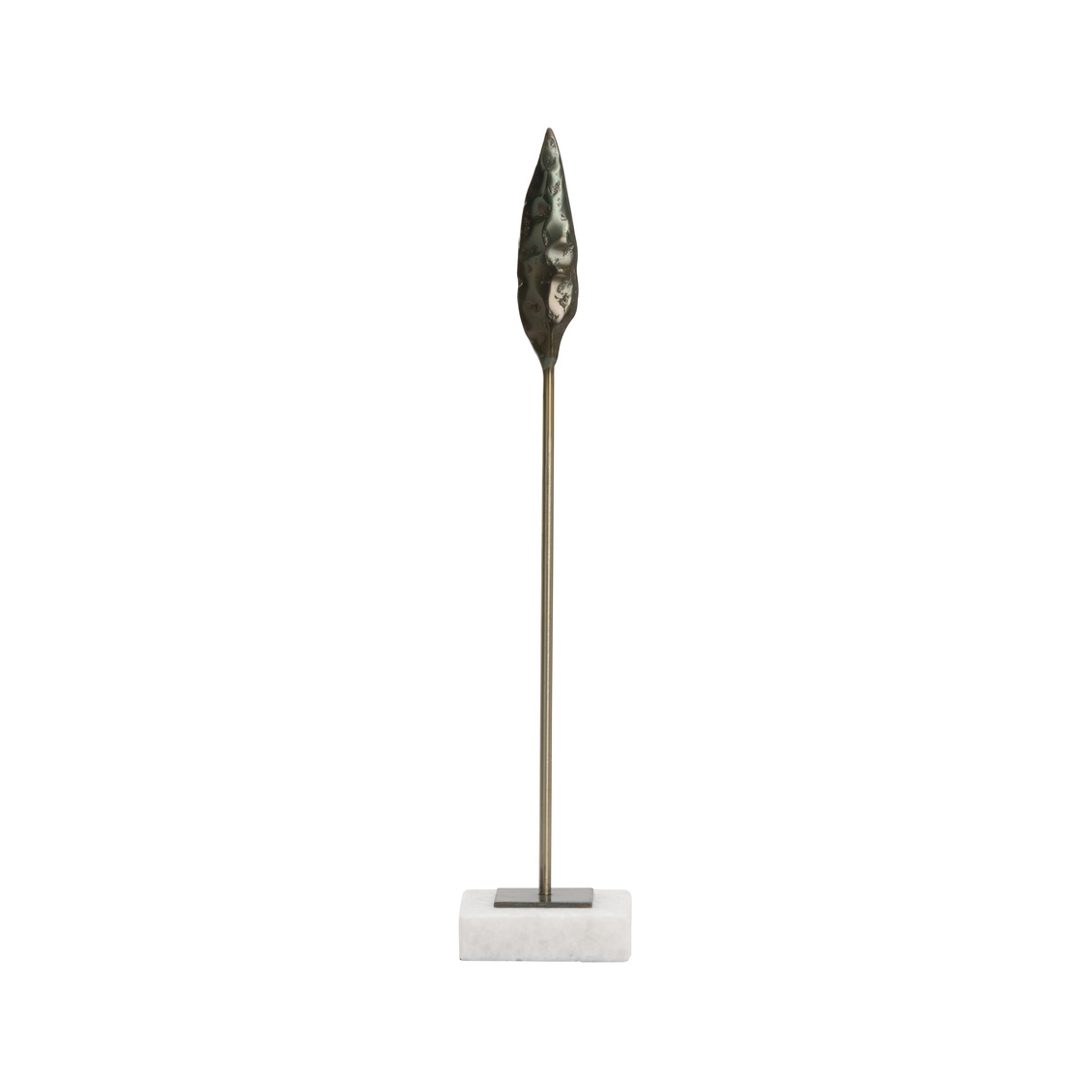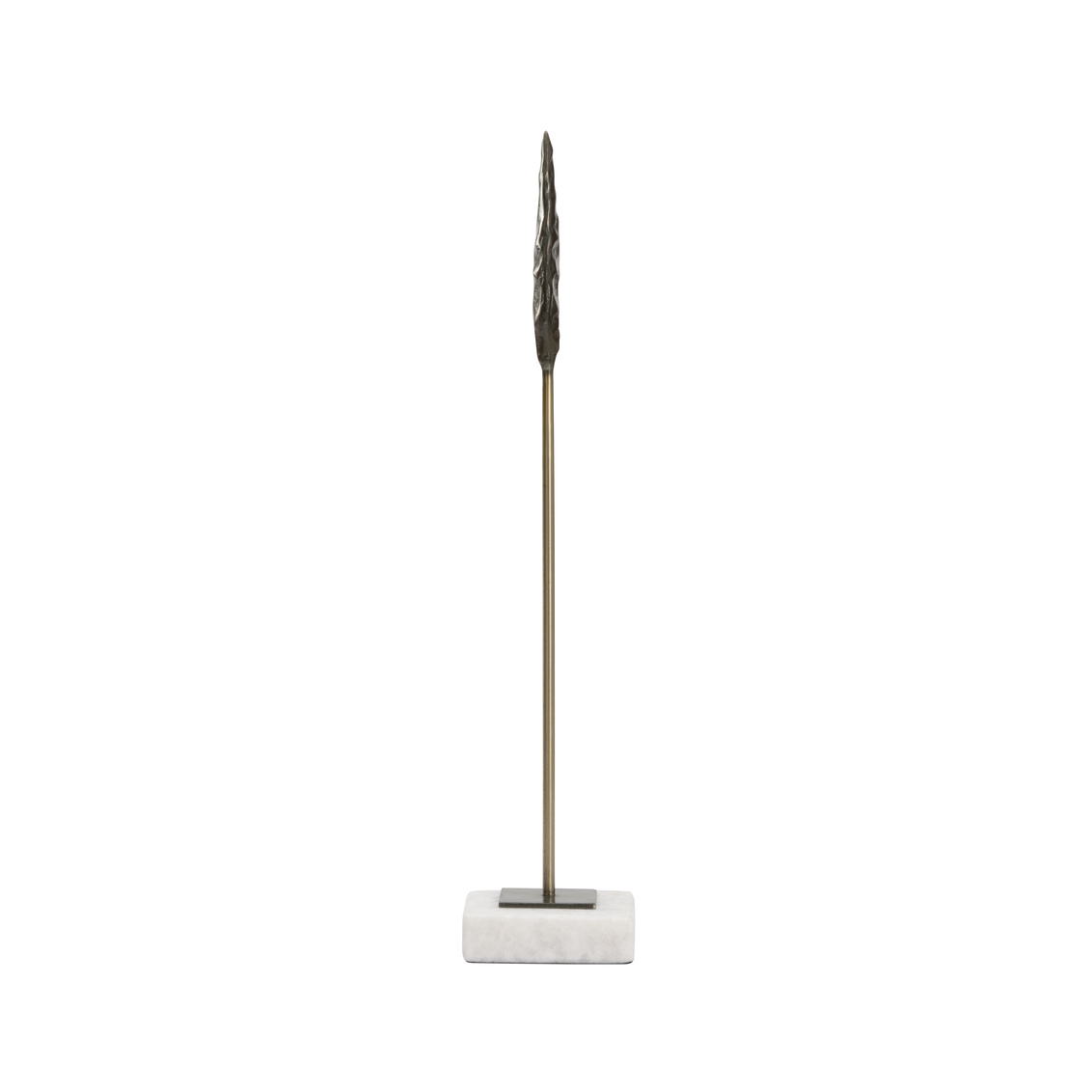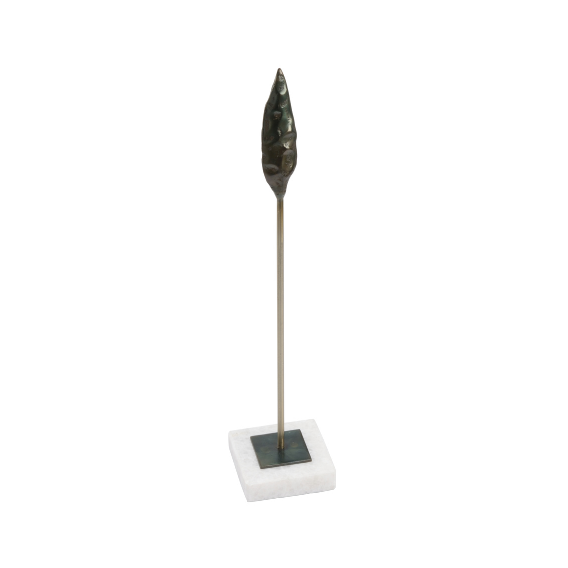 Designed after the lanceolate arrowheads created by early native Americans, fletcher was inspired for the artifact enthusiasts and collectors. Crafted of cast iron, this bronze arrowhead sits on a natural white marble base. Display with various sizes for a historical focal point in your rustic modern home.