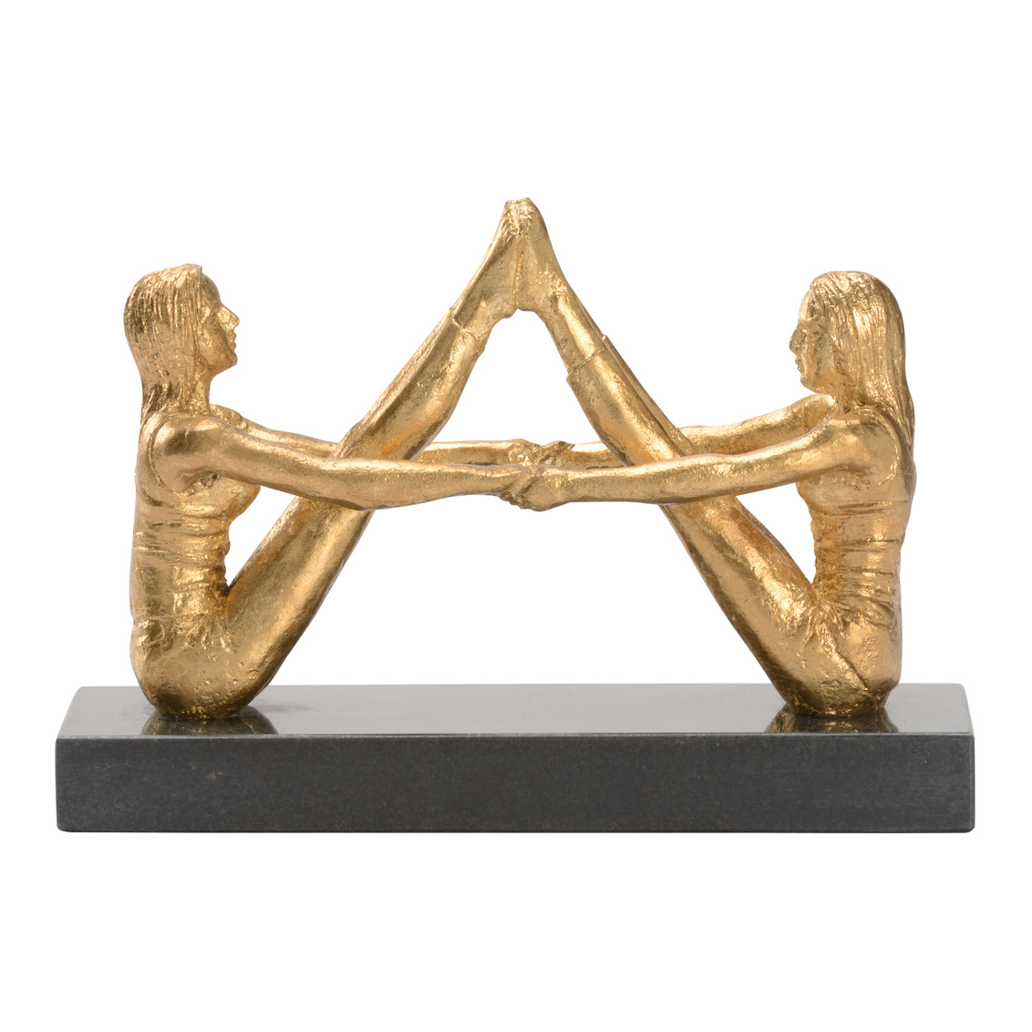 Designed for the yoga enthusiasts, this handcrafted sculpture features two women in navasana or boat pose. This metallic gold, cast... Show more