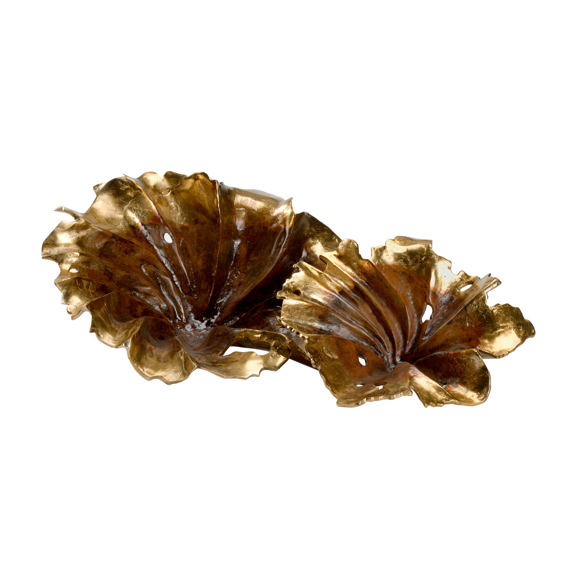 The lustrous rustic gold patina on this set of aluminum leaves is sure to grab the attention of your guests. Display on a dining table or bookcase to create a focal point or add your favorite succulent to create a stunning centerpiece in your rustic modern decor.