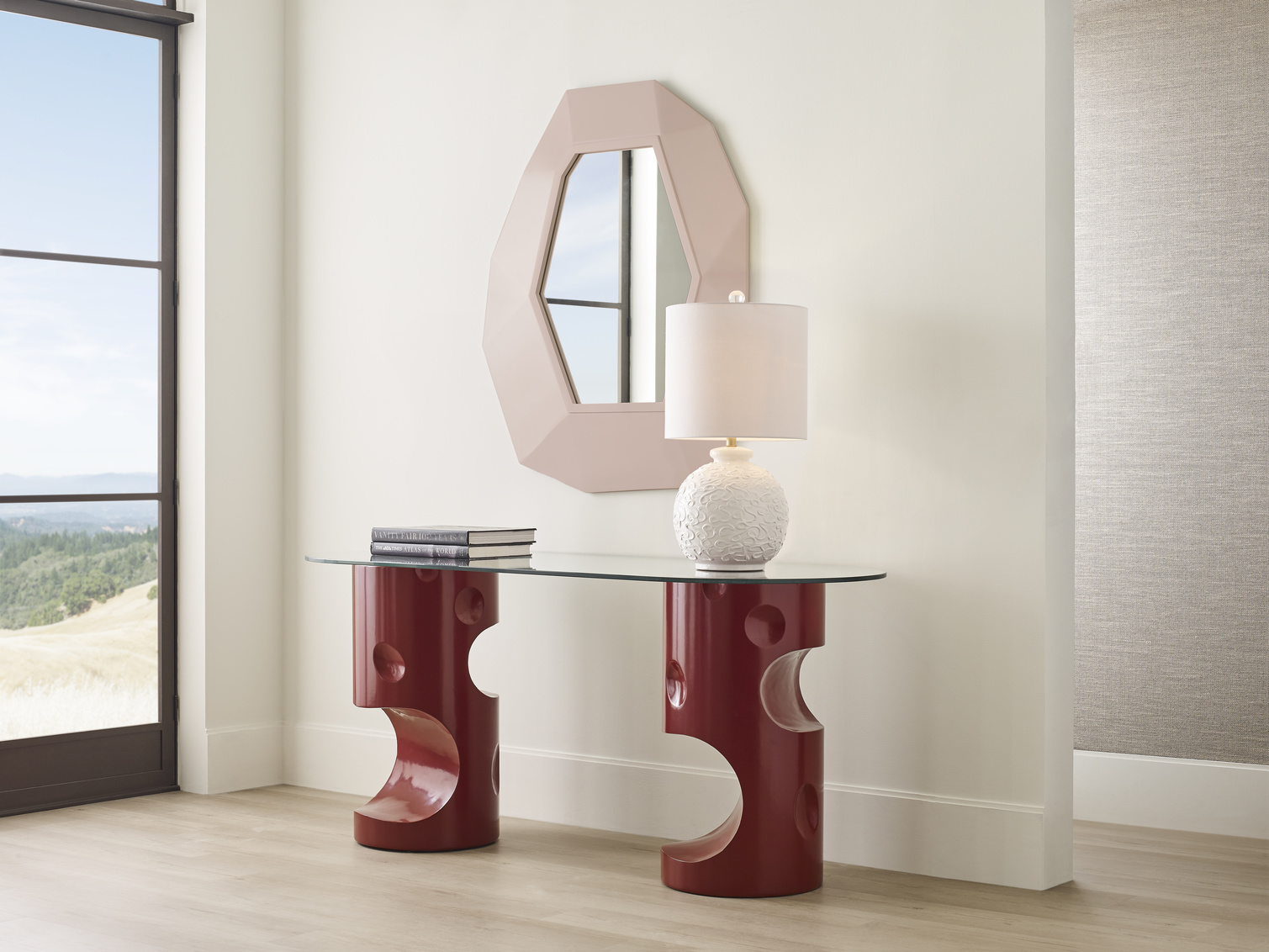Functional, whimsical, versatile; these are just a few words that describe our cloud mine mirror. Crafted of wood, this asymmetrical mirror features a clear, hexagonal mirror that adds dimension to any space. As a part of our Wildwood select program, this mirror can be painted any benjamin moore paint color to match your existing decor. Please provide paint color name and number.