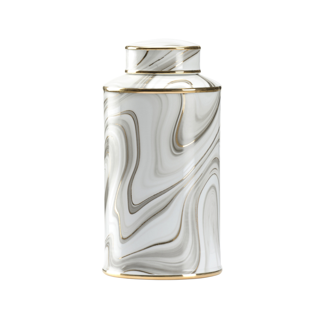 Golden smoke provides the illusion of movement with its black and gray decal over the white glazed porcelain canister. The... Show more