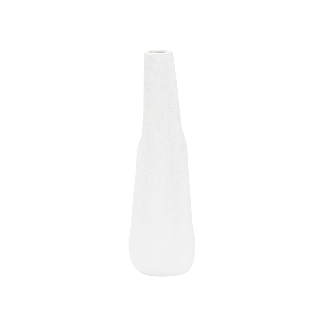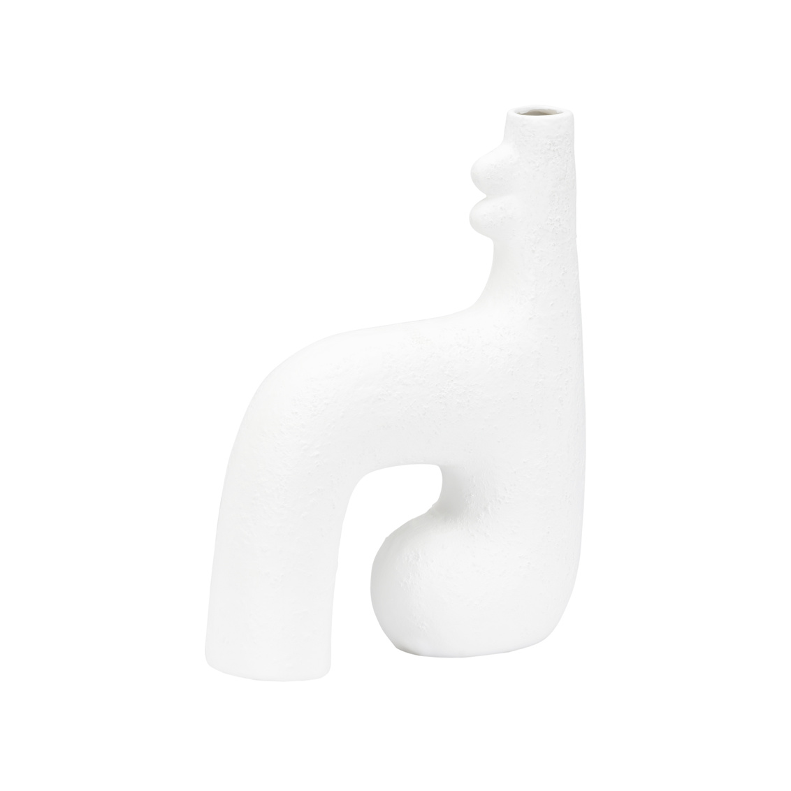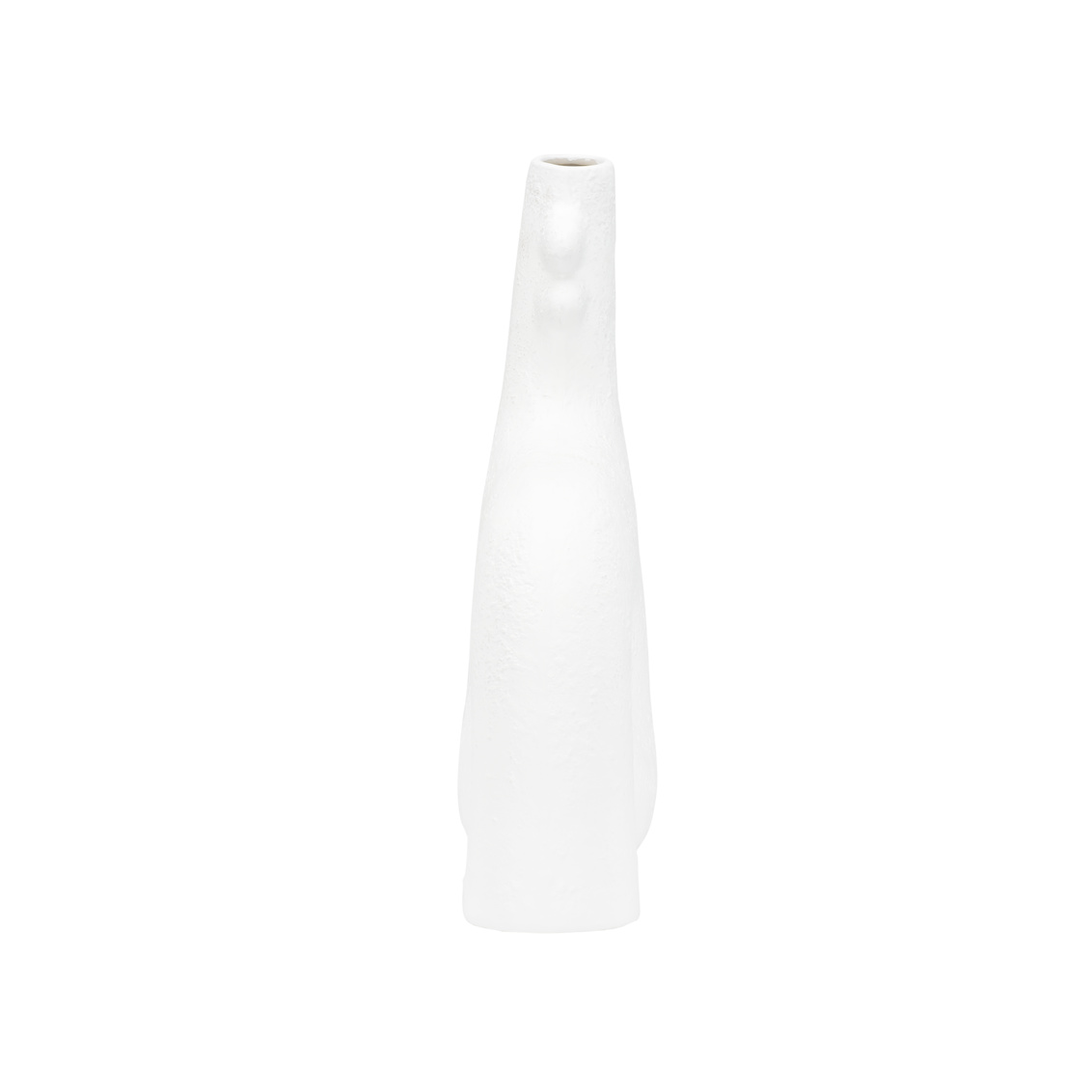 Reminiscent of the white sandy beaches in Kona, HI, this vase is ideal for tabletops in any modern home or office. The white glazed ceramic has a matte, sandy texture that helps to highlight the whimsical silhouette. May be grouped with other Kona styles to create a fun yet cohesive look for bookshelves and other flat surfaces.