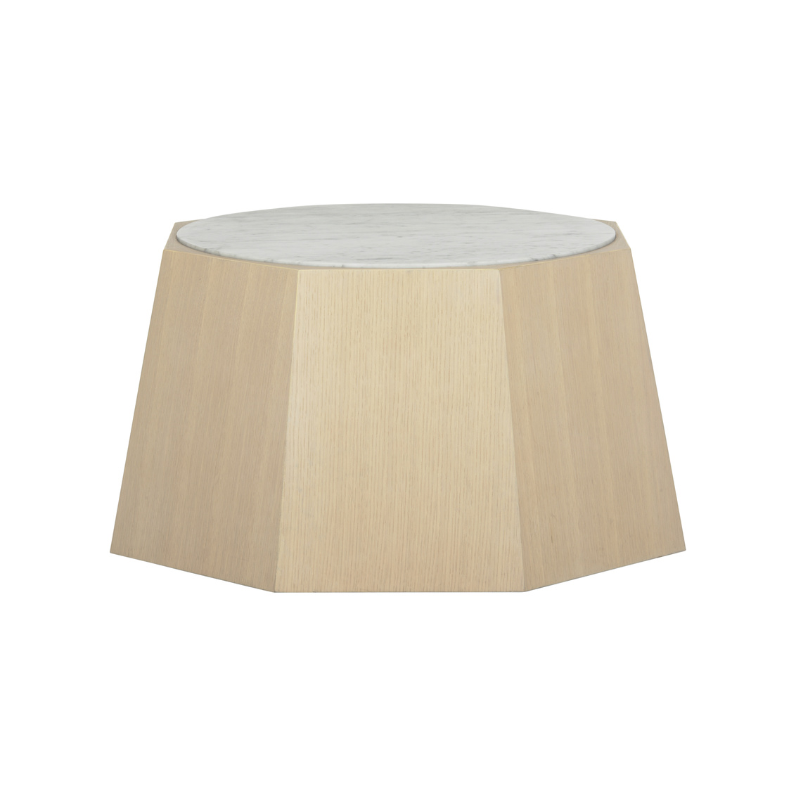 A thoughtfully elevated insert of honed Carrera marble rests perfectly atop a sculptural base of rift-cut white oak. The faceted... Show more