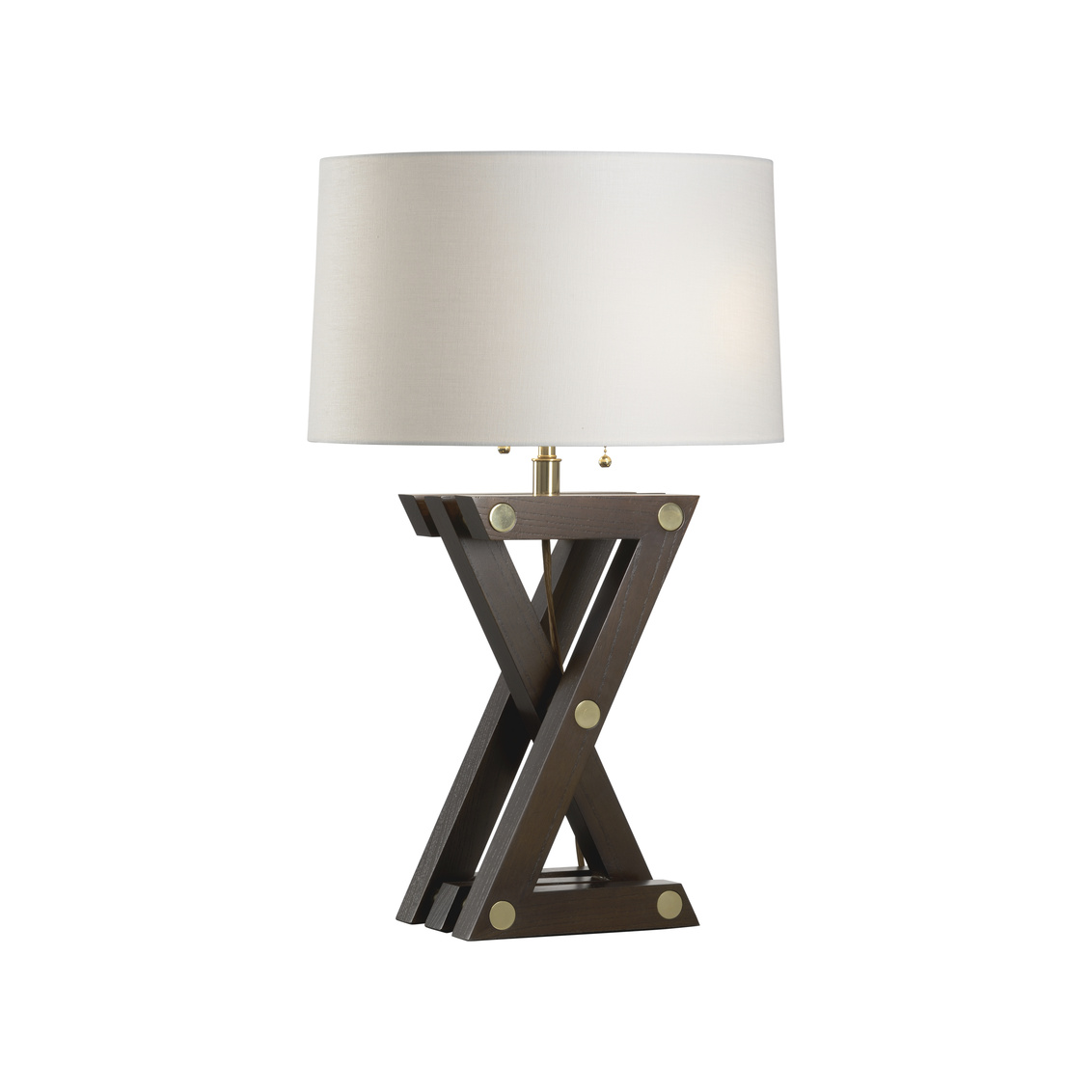 Illuminate your space with the bold and modern design of our Zander Table Lamp. Featuring a striking crossed walnut base accented with sleek brass bolts, this lamp brings a touch of industrial chic to any room. The rich, dark walnut finish adds warmth and texture, while the sturdy construction ensures durability. Topped with a classic off-white shade, this lamp offers a soft, ambient glow that creates a welcoming atmosphere. Perfect for a living room, bedroom, or office, the Zander Table Lamp is a versatile piece that seamlessly blends style and functionality, making it a standout addition to your decor.