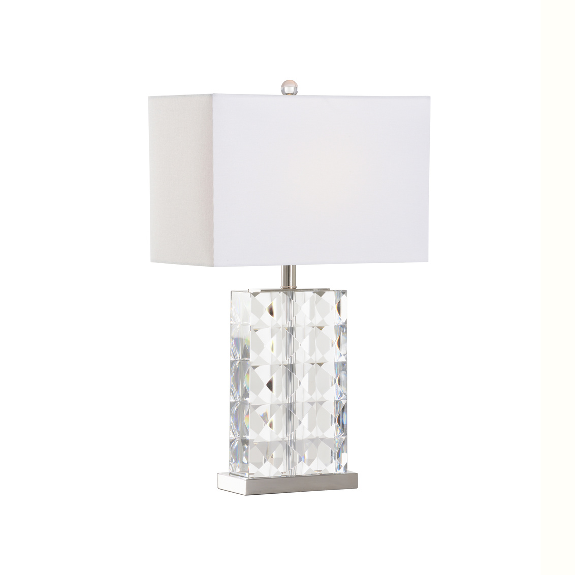 Dress up your home with this clear-cut crystal lamp. The facets of the crystal show off the polished nickel details... Show more