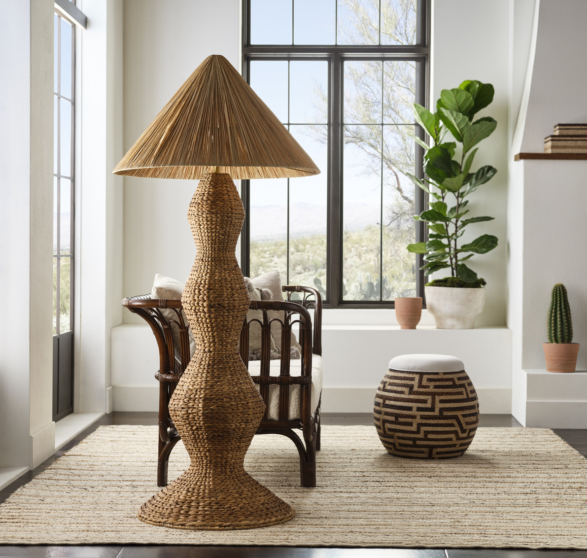 Introducing the Calusa Stool - dyed abaca rope wraps the rounded frame to create an eye-catching maze pattern. Topped with... Show more
