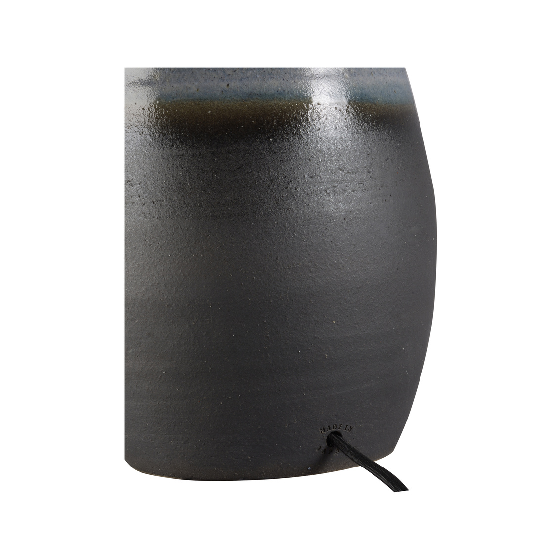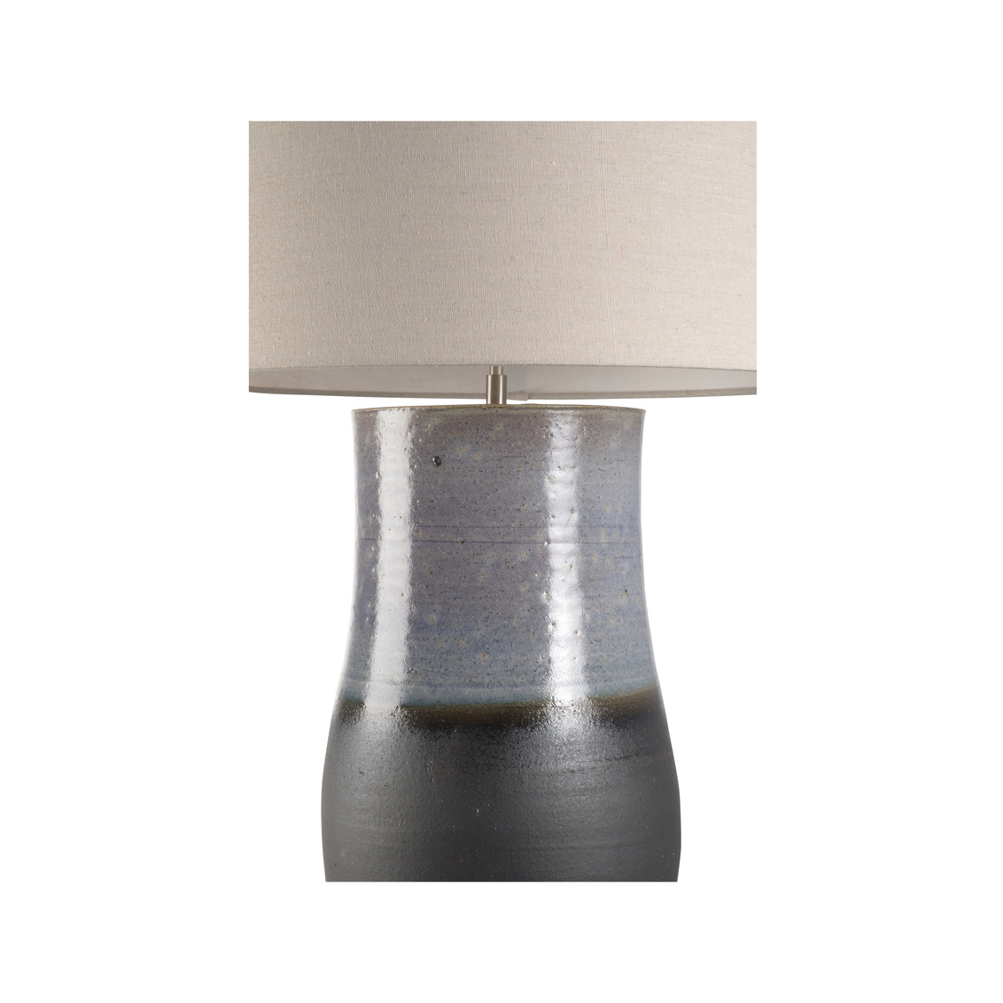 The Sana Table Lamp, part of the Shiga collection, is hand turned and finished in one of six ancient kilns in Japan. This classic modern jar lamp features a blue ombre glaze and is completed with cloth wiring and topped with a refined rolled-edge linen shade. Made in Japan.