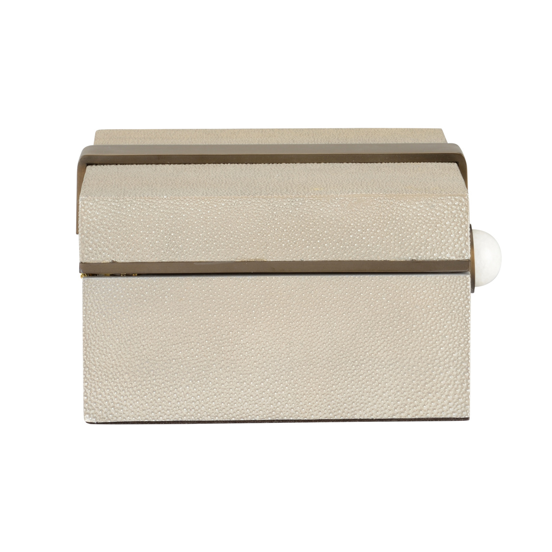 The Steven Box - Rectangle is a luxurious storage piece that combines function with exquisite design. Covered in textured shagreen, this box brings a sophisticated touch to any surface, whether used for storing jewelry, keepsakes, or as a decorative accent. The hinged lid opens to reveal a felt-lined interior, ensuring that your valuables are protected and nestled in a soft setting. Accented with coffee bronze hardware and a striking marble detail, the Steven Box exudes timeless elegance. Perfect for a vanity, desk, or console, this box offers both practicality and refined style, making it a statement piece in any home.