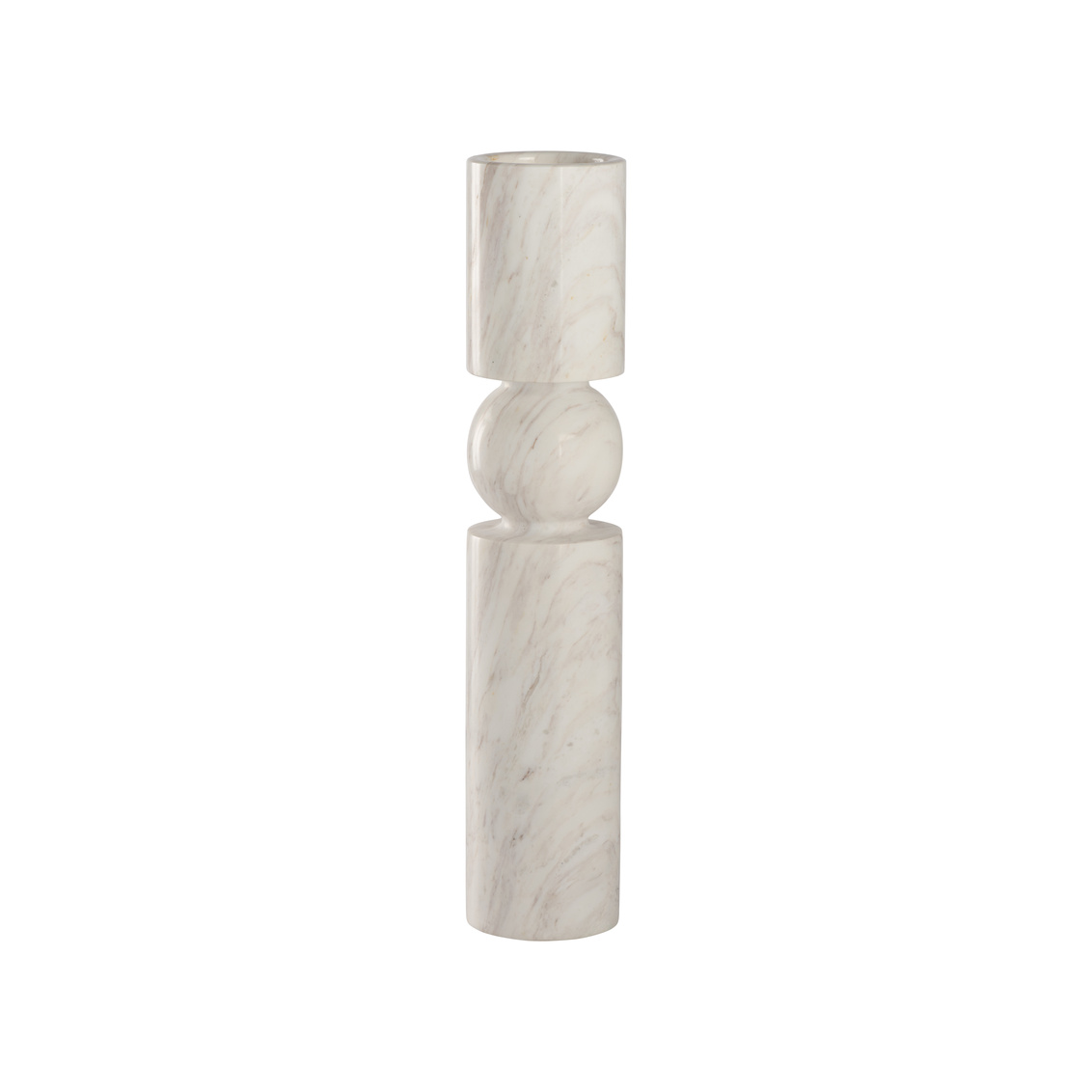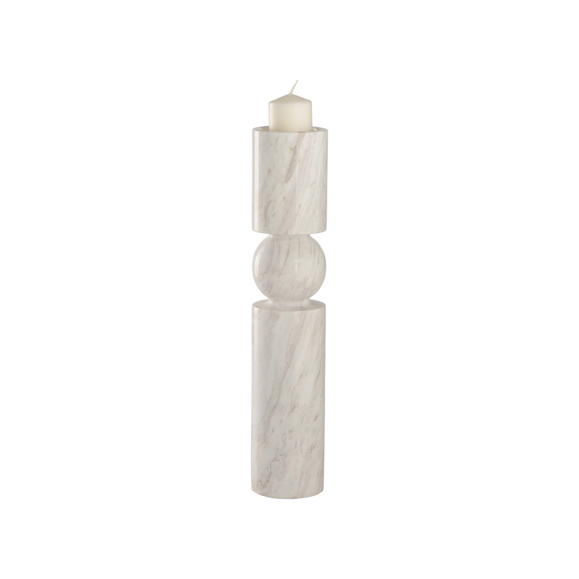 Made from carved marble, the Harper Candleholder features a sculptural silhouette with stacked geometric forms. Its smooth finish and natural veining add a refined, modern touch to any setting.