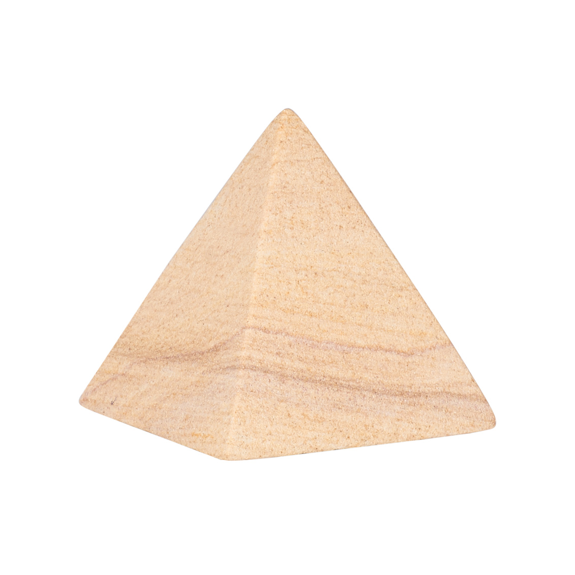 The Icarus Pyramid is a sculptural accent crafted from natural sandstone, showcasing soft striations and earthy tones unique to each piece. Its geometric form adds a grounding, architectural element to shelves, desks, or tabletop displays.