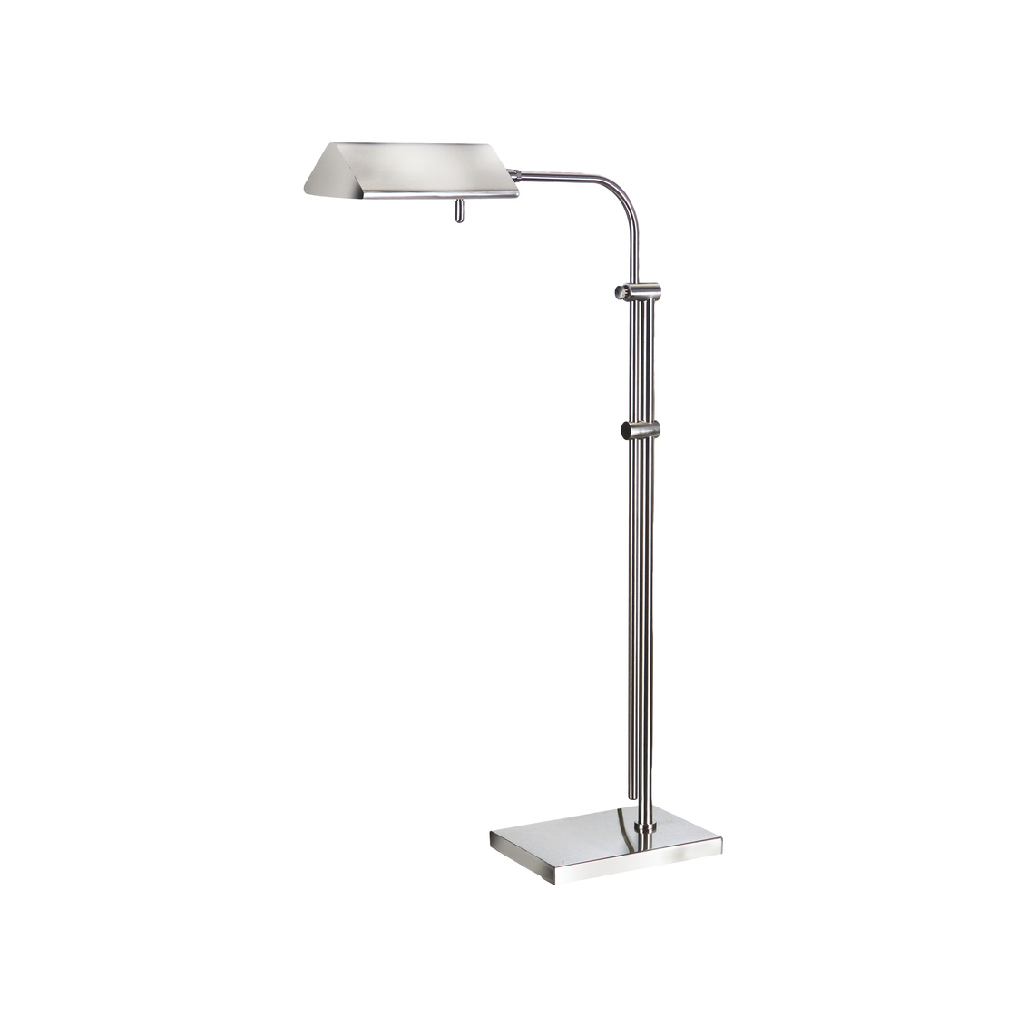 Brass pharmacy lamp with satin nickel finish. Adjustable: 35" - 56".