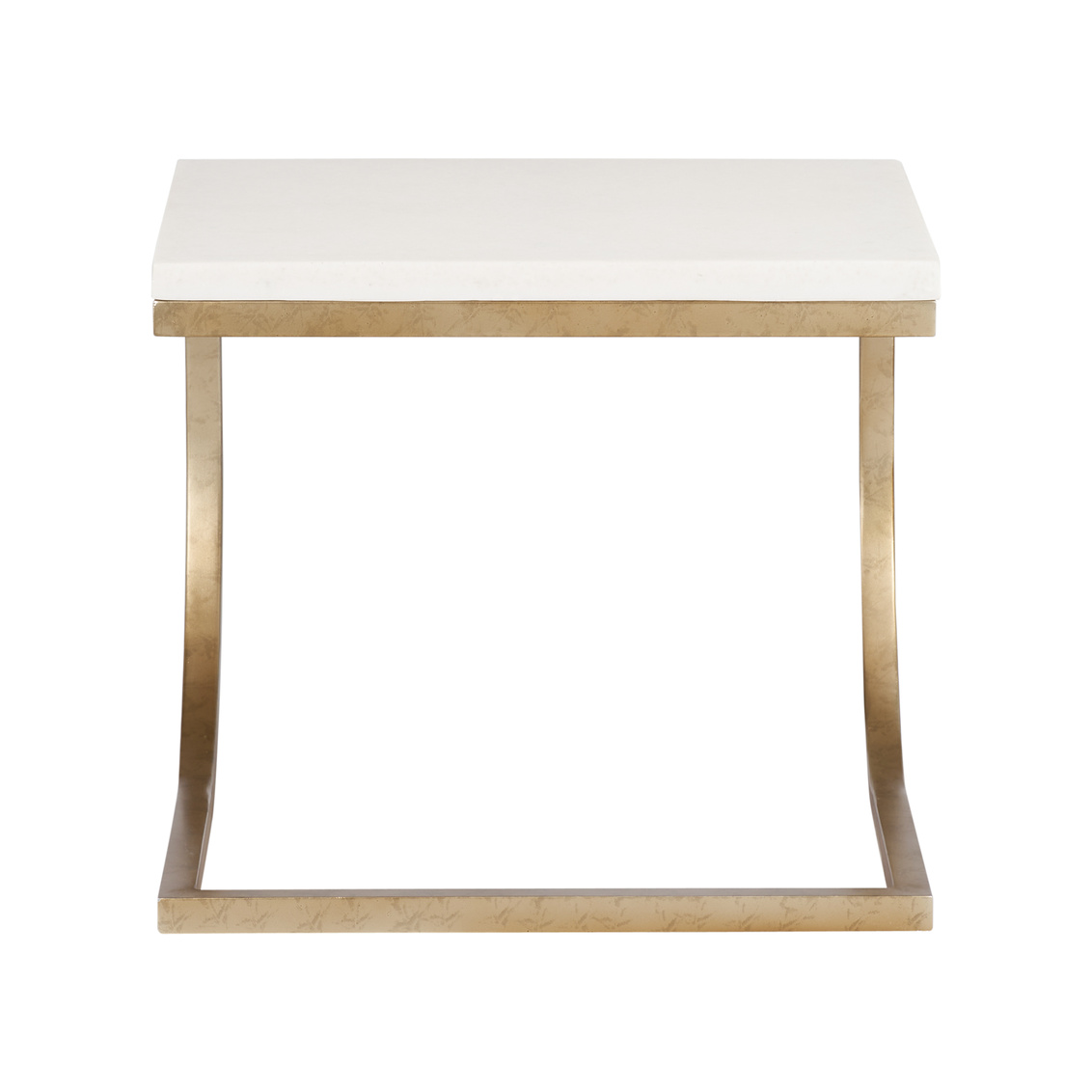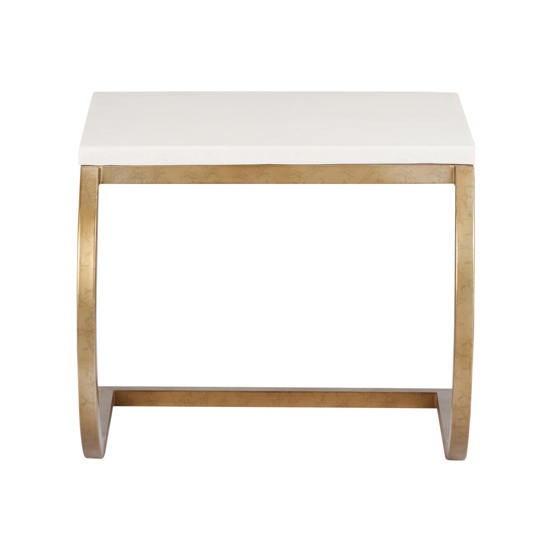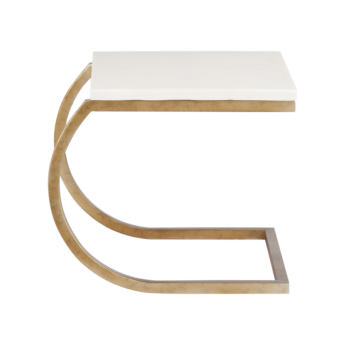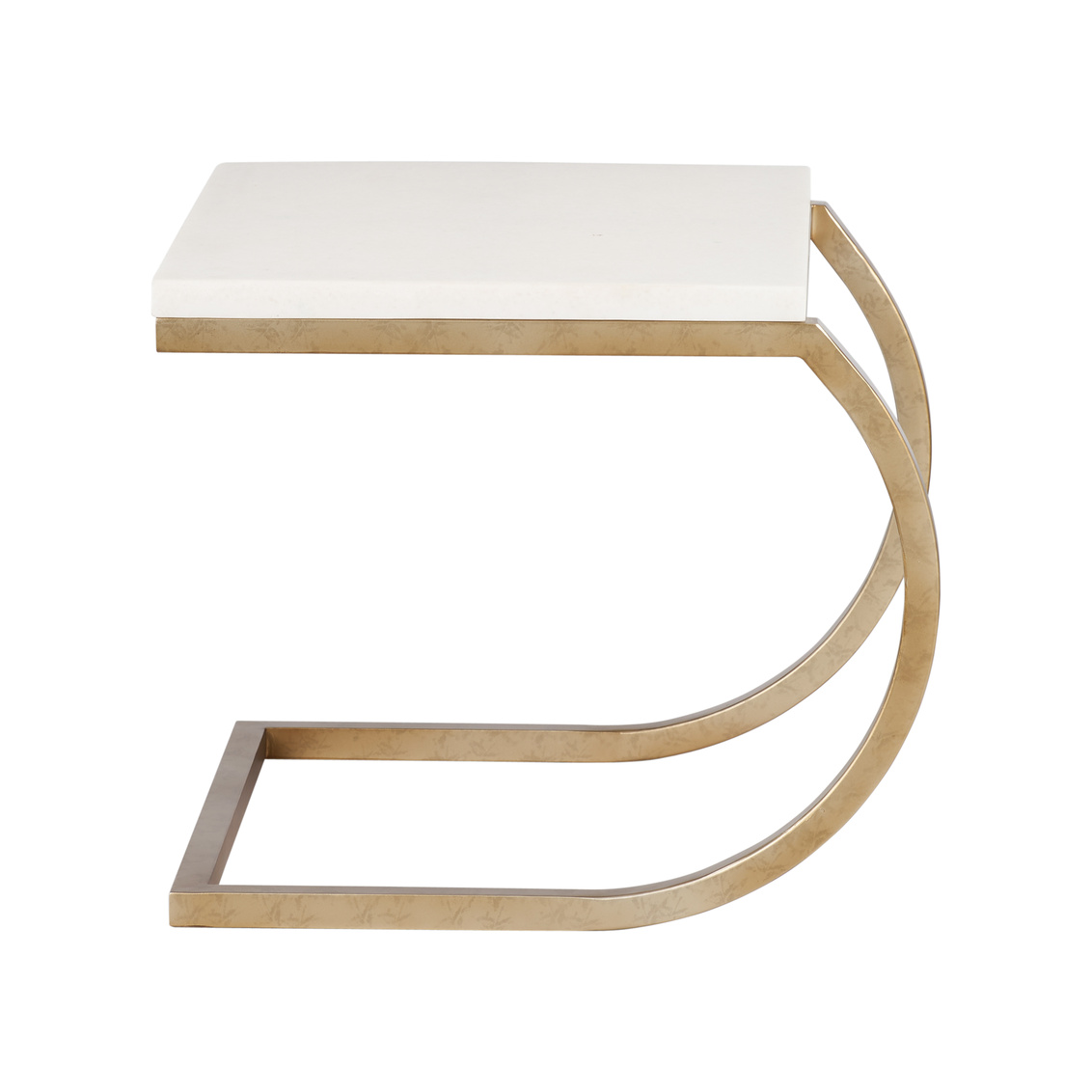 Brass curved table with stone-like top.