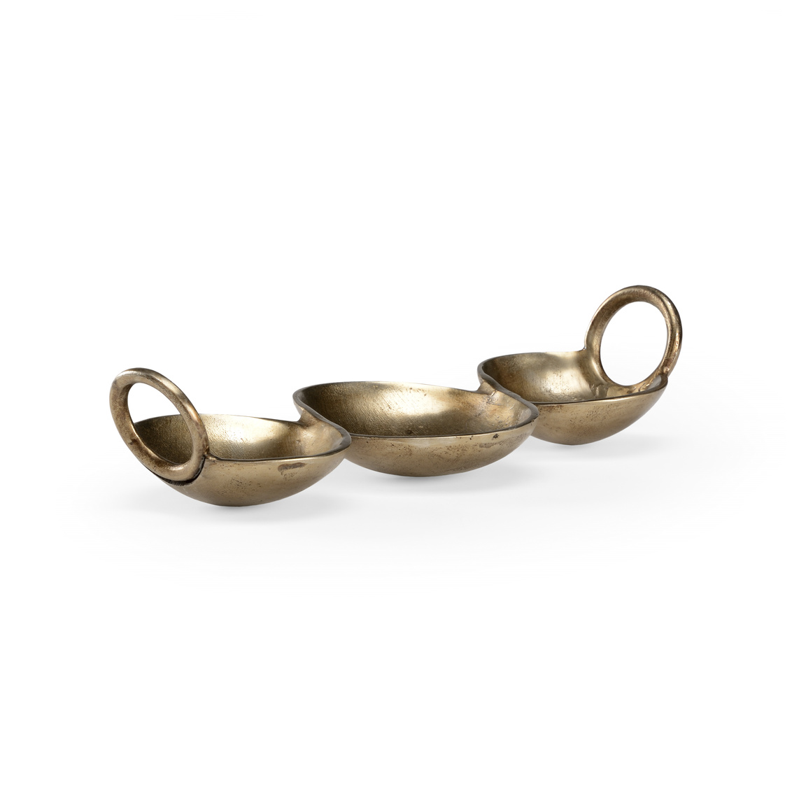 Brighten your home office with our Three Cup Dish. This iron tray boasts an antique bronzed finish and circle handles.... Show more
