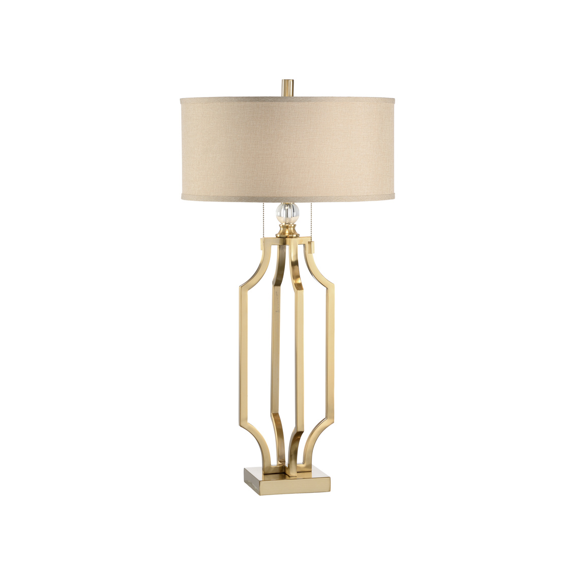Update your interior with Valentino Lamp. This two-light design emits ample illumination throughout your space. The open frame design with an antique brass finish along with the shallow drum shade provide a contemporary look for a den, bedroom or home office.
