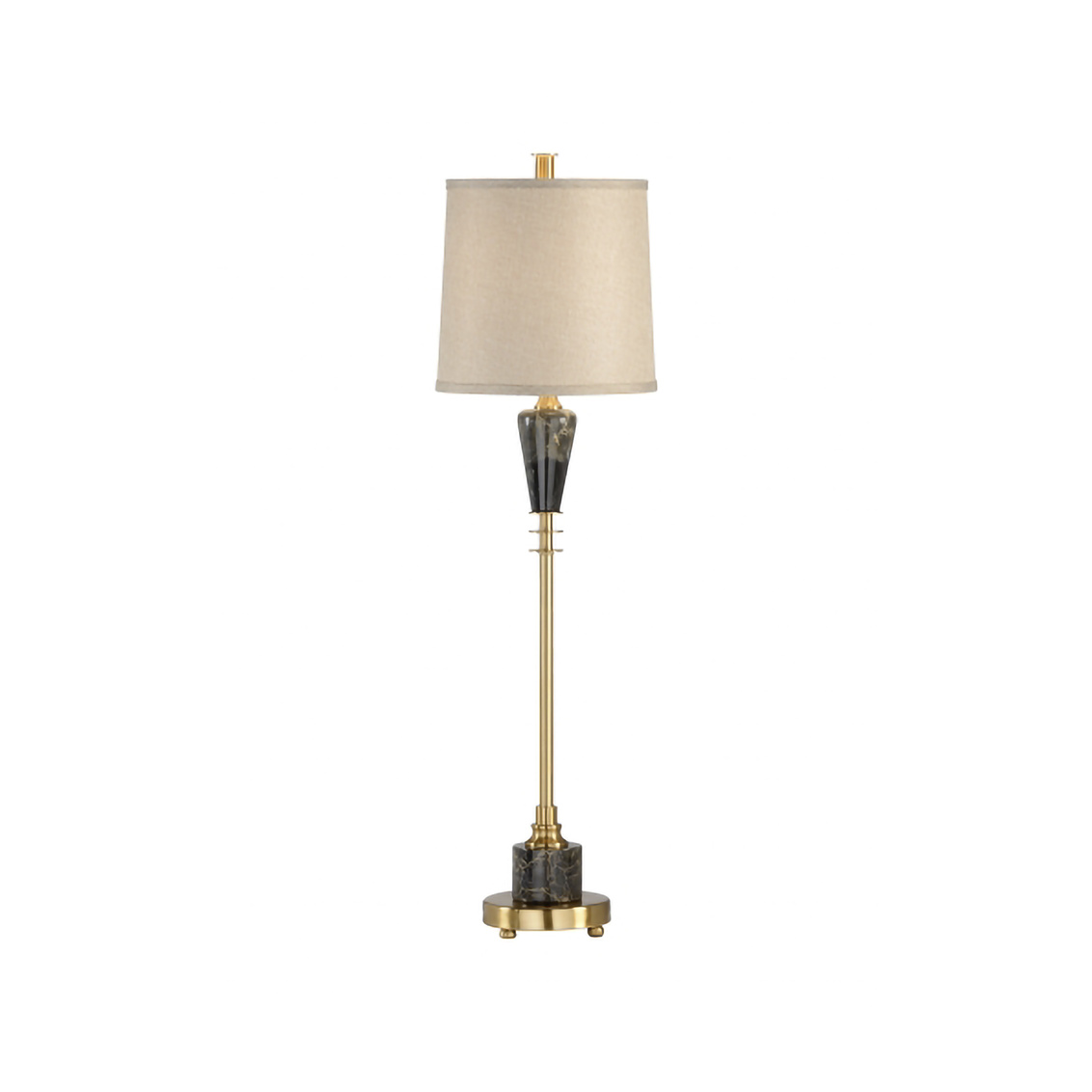 Bring the beauty of nature into your modern home with Cosmic Lamp. The earthiness of the natural brown marble is juxtaposed with the sleek warm tones of the antique brass column in this 35" table lamp. A natural linen drum shade directs the light to shine off of the brass and completes this neutral design perfect for a console in your entryway or an end table in your living area.