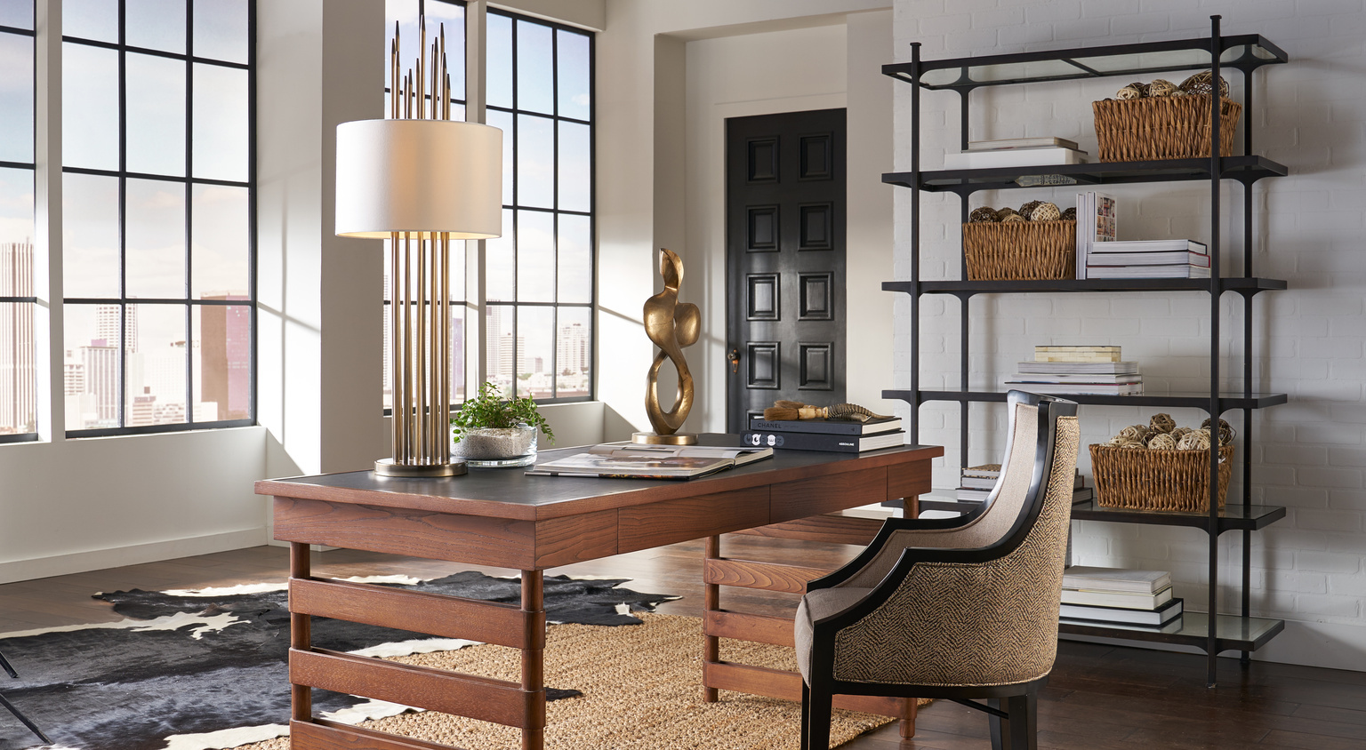 Standing over 20" in height, Swirl Sculpture is a noteworthy accent. The antique gold cast aluminum has a lustrous glow... Show more