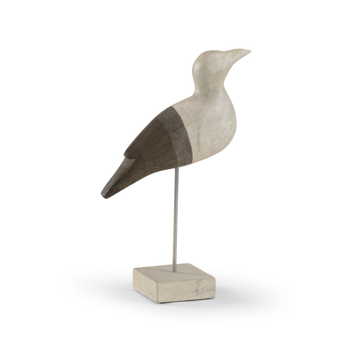 Create a coastal atmosphere by adding Shorebird to your decor. This 15" sea gull is crafted in hand-stained Mango wood. The neutral colors effortlessly blend with any design. Ideal for any even surfaces throughout your beach cottage. May be paired with our 12" Shorebird.