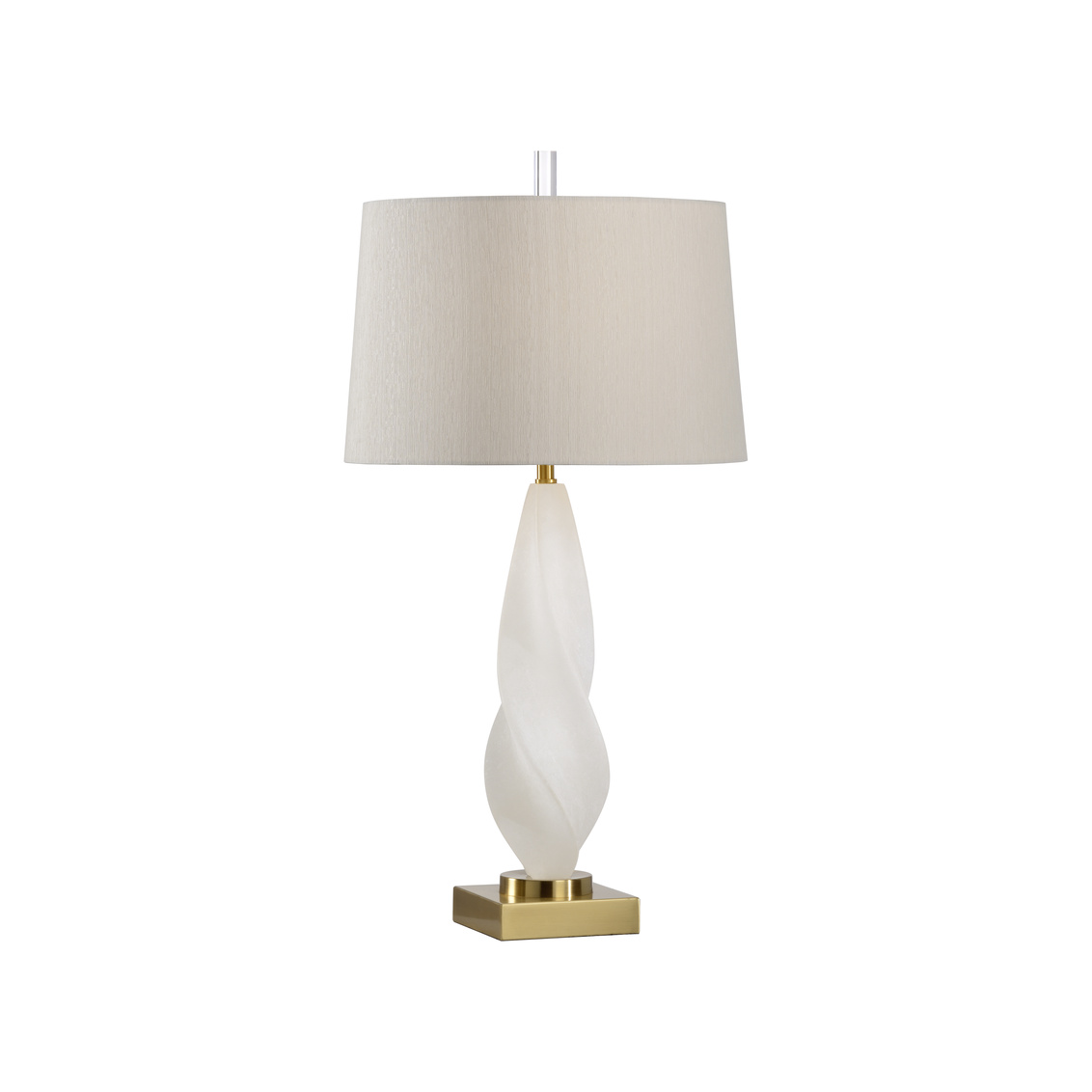 Sensuous smooth twirl of solid natural alabaster mounted on antique brass base