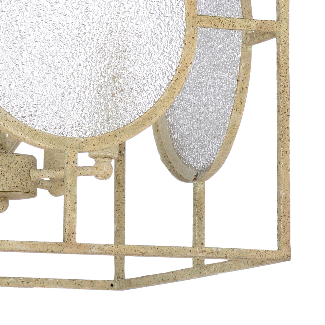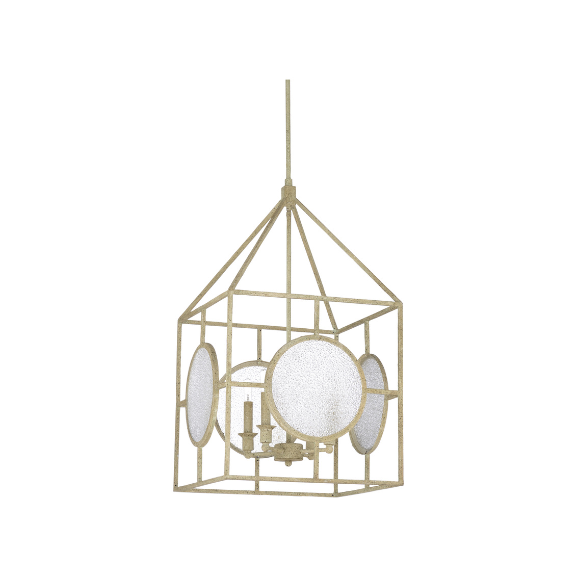 Crusted white finish with clear crackle glass panels comes with 3-12" and 1-6" extention rods. Four lights