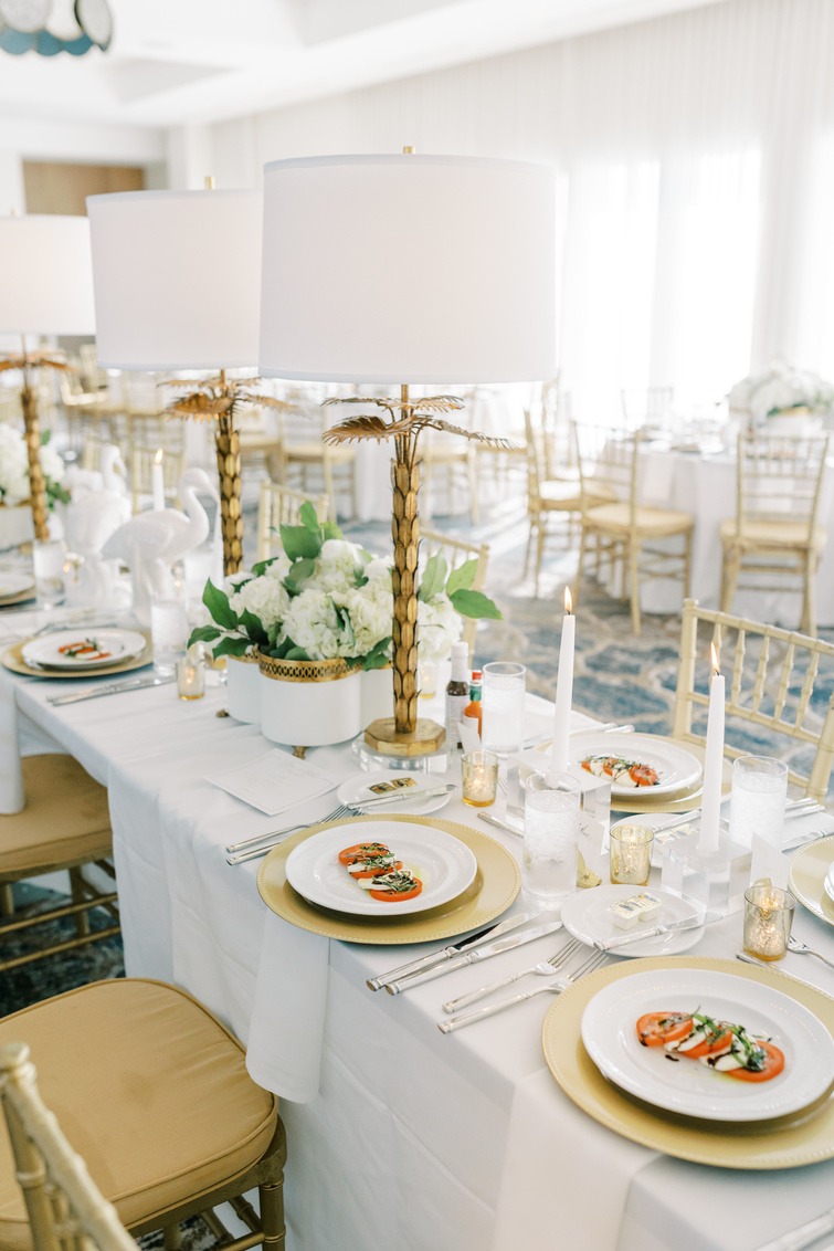 Function and elegance for your coastal home. Palm Island Lamp is an artistic palm tree design with a warm antique gold leaf finish set on a clear crystal mounting. A crisp white linen drum shade completes the luxe coastal vibe and creates ample illumination in your waterfront retreat.