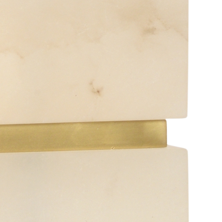 Two floating slabs of natural alabaster incased by an antique brass mounting.