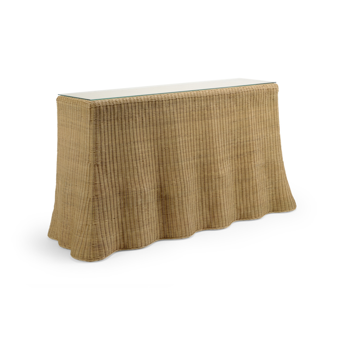 Inspired by ocean waves, the Savannah Console flows beautifully in a waterfront environment. Handwoven in natural wicker with a clear... Show more